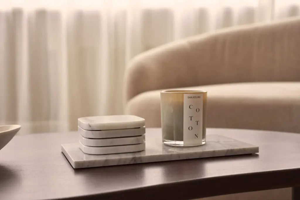 Hozzon időtlen eleganciát asztalára ezzel a kifinomult márvány poháralátét szettel. Prémium fehér márványból, kézzel készítve minden darab egyedi erezetet mutat, így minden alátét önálló műalkotás.
