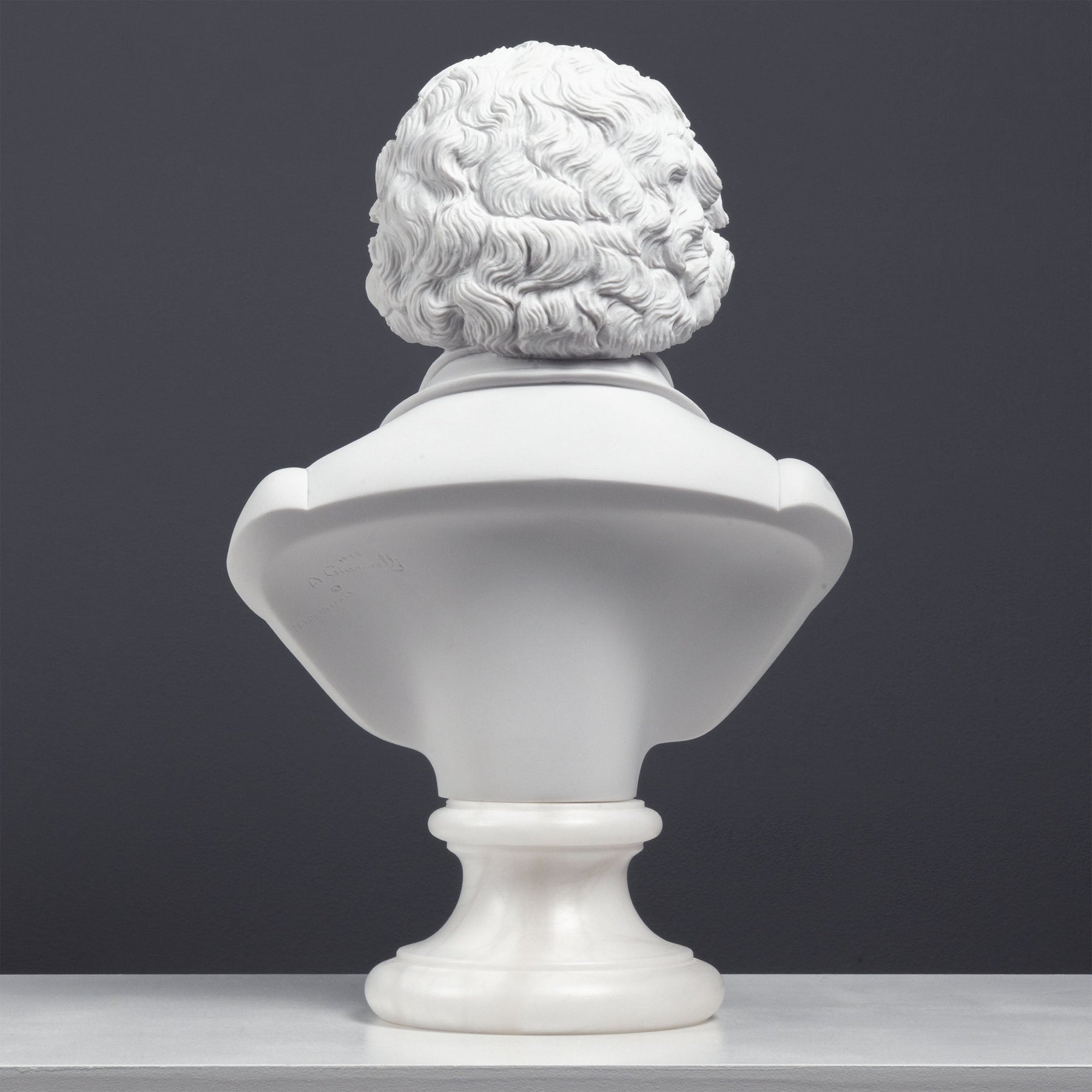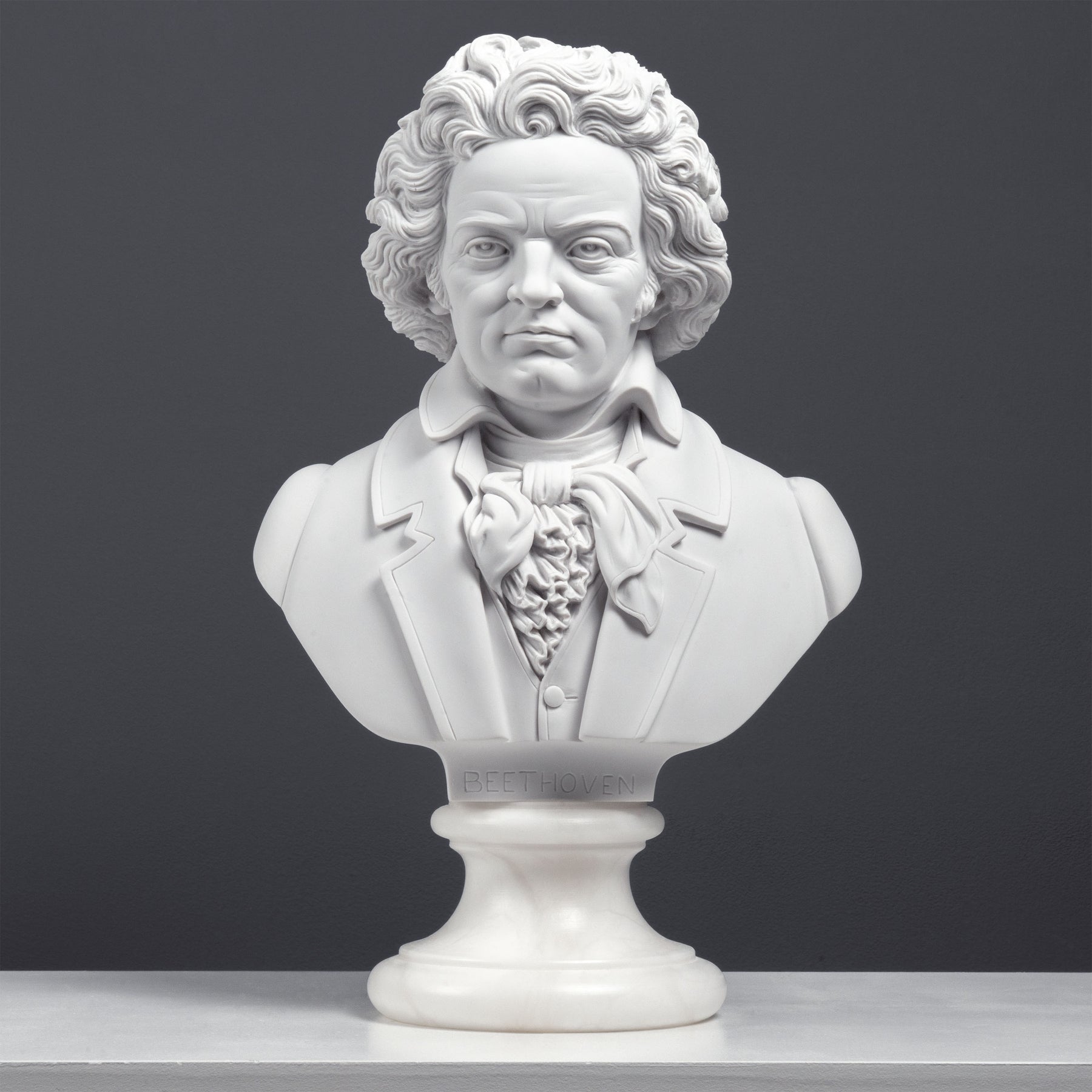 Ez a tekintélyt sugárzó mellszobor a zeneszerzőt mély elmélkedés pillanatában ragadja meg — barázdált homloka, határozott arckifejezése és jellegzetes vonásai az alkotással teli elmét tükrözik. A történelem legmeghatóbb kompozícióinak csendes feszültségét idézi.